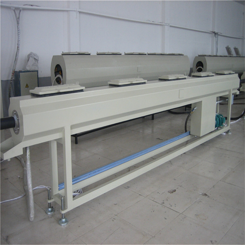 This production line mainly produces the large diameter MDPE/HDPE pipe. This kind of pipe has heat-resisting, bears the aging, the mechanical strength high, to bear the environment stress dehiscence, the anti creep to be able good and so on merits, is the city border transports the fuel gas and the urban water supply pipeline first choice product. Production line characteristic: Highly effective extruding machine: Matches take longchangjie engineer as the PE pipe design not the equal-space undulation screw rod, the forced cooling reversion spiral groove feeding section, matches by the high speed low noise hard tooth face decelerator, the output is high, the material melts warm low, the energy conservation effect is good. Screw divergence type compound nose: The guarantee melts the body pressure, the current capacity does not have the fluctuation evenly, the product is dense, the surface is smooth, does not have the flow marking. The vacuum decides the diameter and the cooling system: Uses the beat to decide the diameter wrap, the water trough uses the stainless steel. Cutting: May cut the heavy-caliber thick wall pipe.