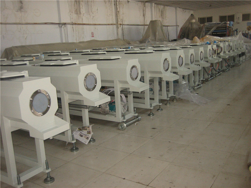 This production line mainly produces the large diameter MDPE/HDPE pipe. This kind of pipe has heat-resisting, bears the aging, the mechanical strength high, to bear the environment stress dehiscence, the anti creep to be able good and so on merits, is the city border transports the fuel gas and the urban water supply pipeline first choice product. Production line characteristic: Highly effective extruding machine: Matches take longchangjie engineer as the PE pipe design not the equal-space undulation screw rod, the forced cooling reversion spiral groove feeding section, matches by the high speed low noise hard tooth face decelerator, the output is high, the material melts warm low, the energy conservation effect is good. Screw divergence type compound nose: The guarantee melts the body pressure, the current capacity does not have the fluctuation evenly, the product is dense, the surface is smooth, does not have the flow marking. The vacuum decides the diameter and the cooling system: Uses the beat to decide the diameter wrap, the water trough uses the stainless steel. Cutting: May cut the heavy-caliber thick wall pipe.
