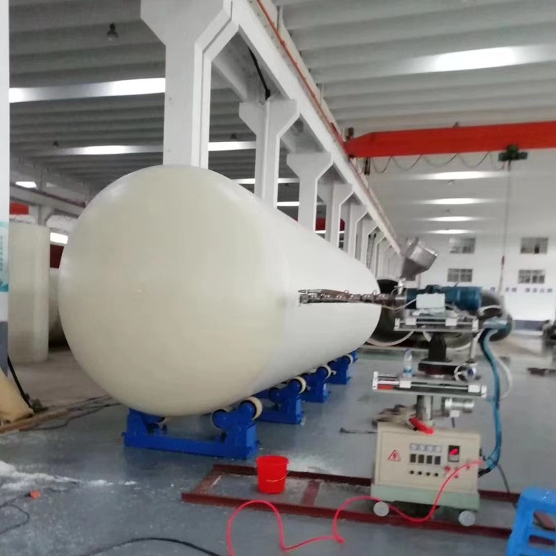 Tank body extrusion winding manufacturing: The tank body is made by using the PPH spiral extrusion winding machine to process PPH granular materials into the tank body. The system adopts the process of heating and melting PPH granules, extruding them, and then winding them on a steel mold to form a tank body. Advantages of extrusion winding: