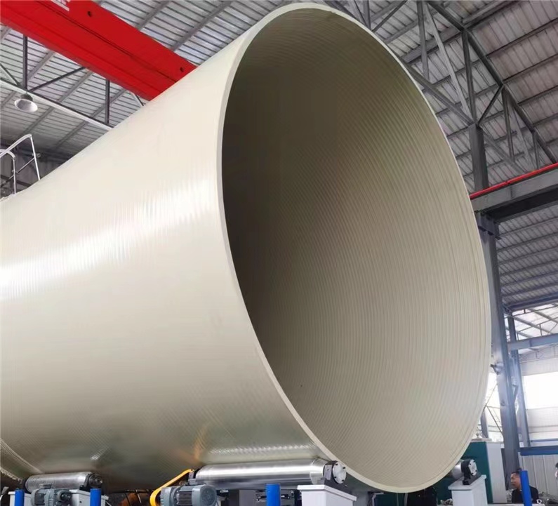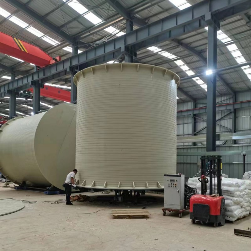 Tank body extrusion winding manufacturing: The tank body is made by using the PPH spiral extrusion winding machine to process PPH granular materials into the tank body. The system adopts the process of heating and melting PPH granules, extruding them, and then winding them on a steel mold to form a tank body. Advantages of extrusion winding: